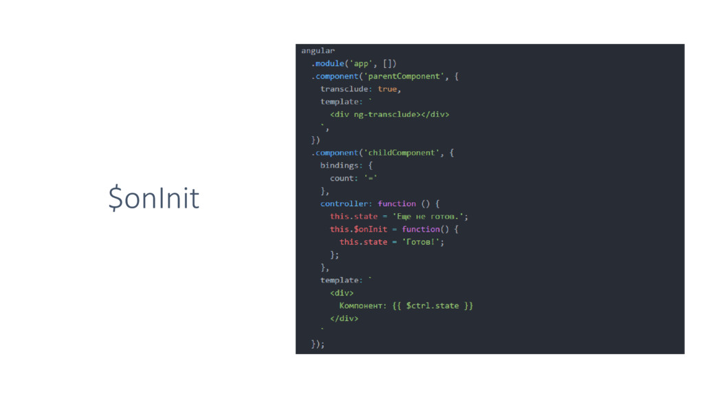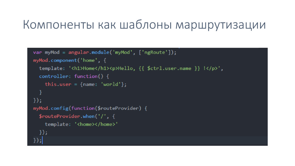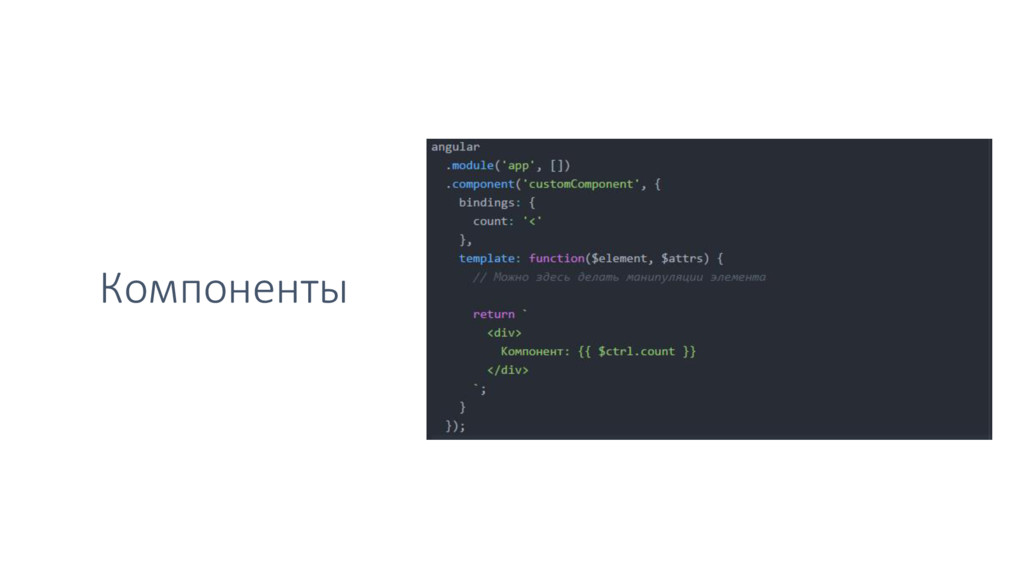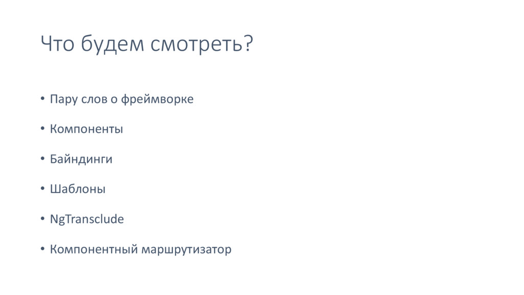 • Байндинги • Шаблоны • NgTransclude • Компонентный маршрутизатор