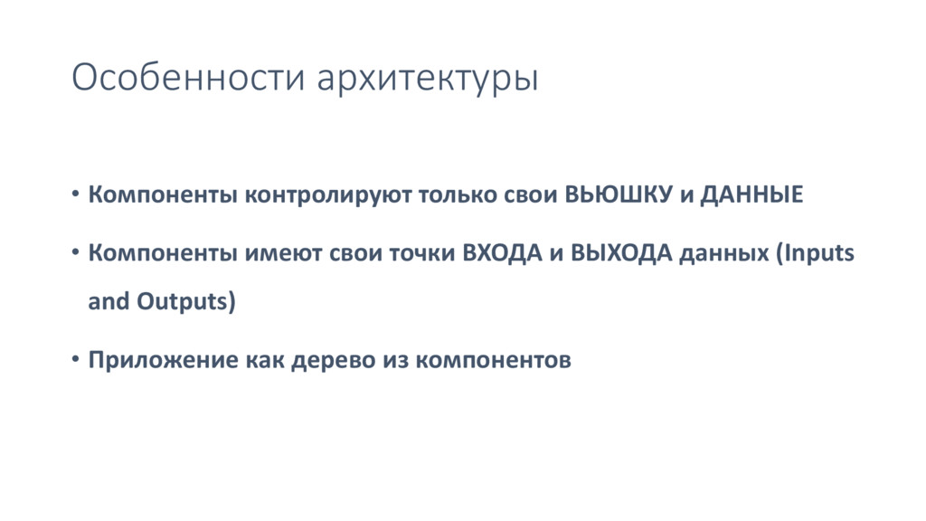 Особенности архитектуры • Компоненты контролируют только свои ВЬЮШКУ и ДАННЫЕ