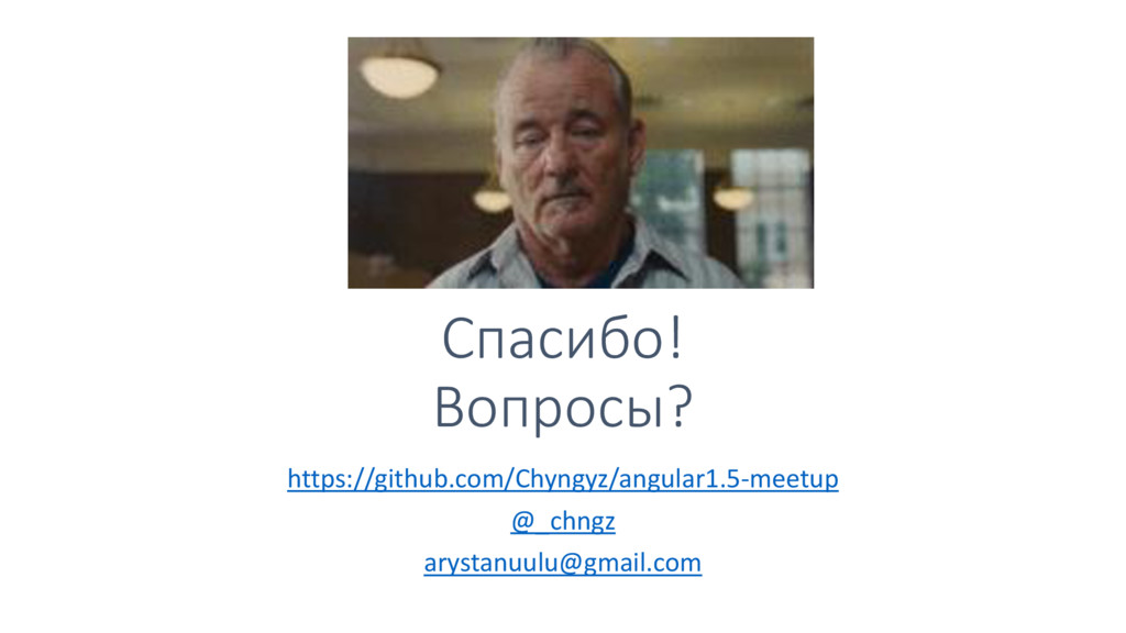 Спасибо! Вопросы? https://github.com/Chyngyz/angular1.5-meetup @_chngz