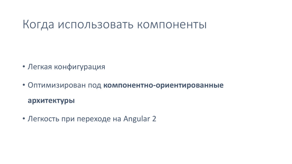 Когда использовать компоненты • Легкая конфигурация • Оптимизирован под компонентно-ориентированные
