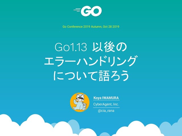 resp, err := http.Get("cyberagent.ai") if err != nil { return nil, err } a, err := ioutil.ReadAll(resp.Body) return a, fmt.Errorf(“%w”, err) } func main() { a, err := f() if errors.Is(err, nil) { fmt.Println(err) } fmt.Println(string(a)) } errors.Isを使おう!