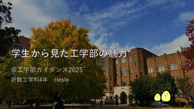 学生から見た工学部の魅力 @工学部ガイダンス2025 計数工学科4年 ciesle