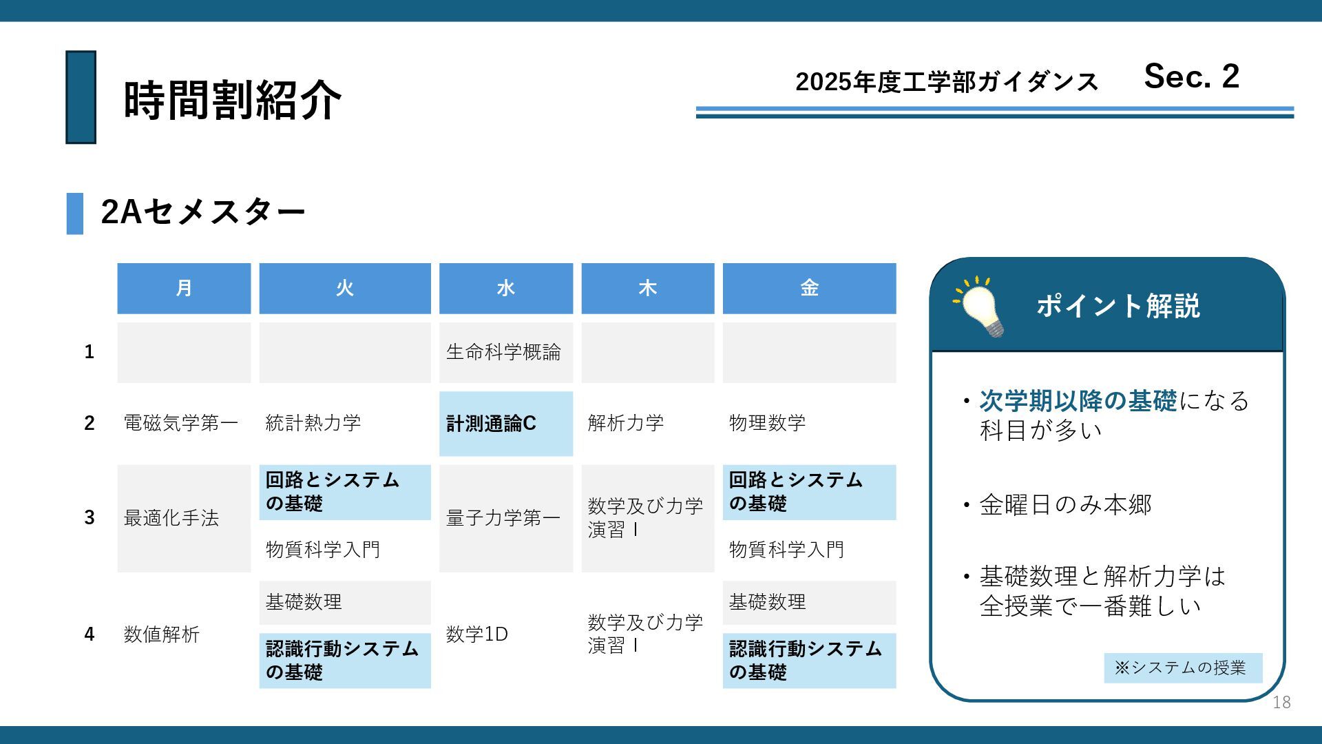 時間割紹介 4Aセメスター ポイント解説 2025年度工学部ガイダンス Sec. 2 月 火 水 木