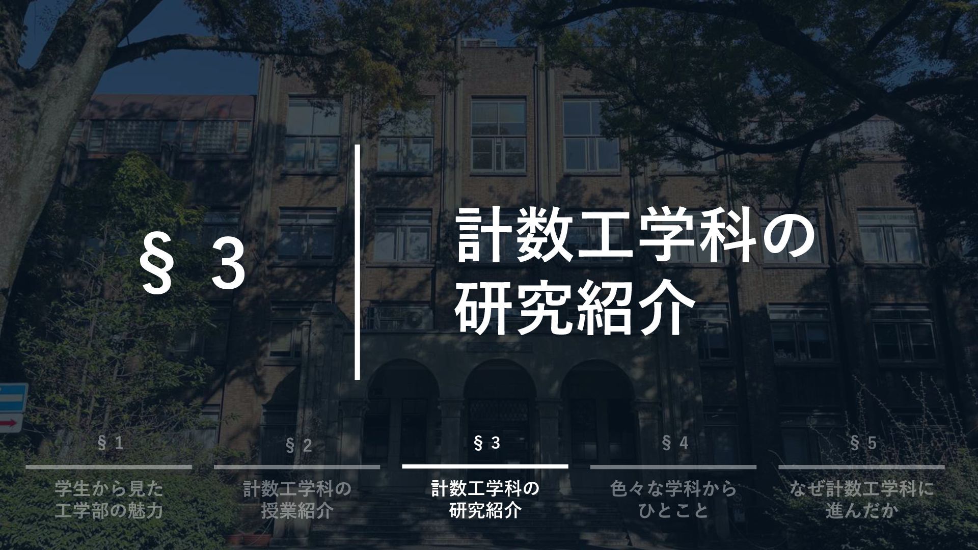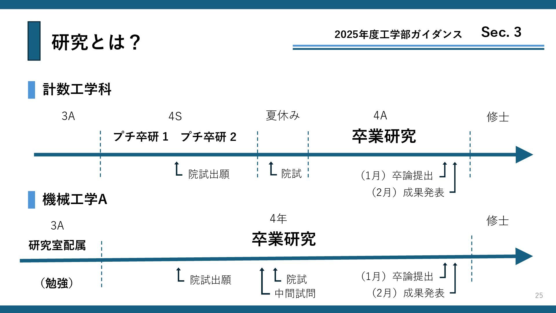 研究とは? 2025年度工学部ガイダンス Sec. 3 計数工学科 3A 4S 4A 修士 夏休み