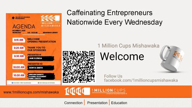 1. 1 Million Cups Mishawaka Welcome Follow Us facebook.com/1millioncupsmishawaka Connection |