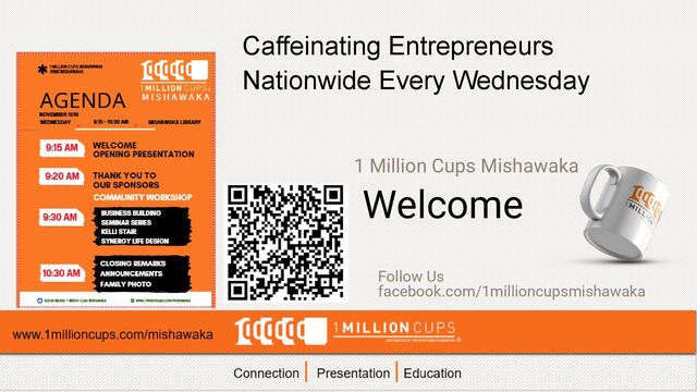 presentation | elevator speech Receive feedback from a diverse audience Gain exposure in new markets Support from 1 MC community Need help? We got you – 1MC Coach Register to Present Go to www.1millioncups.com/mishawaka Look for “apply to present” A 1MC Coach will contact you. 1. 2. 3.
