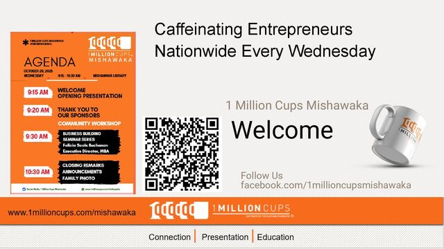 1. 1 Million Cups Mishawaka Welcome Follow Us facebook.com/1millioncupsmishawaka Connection |