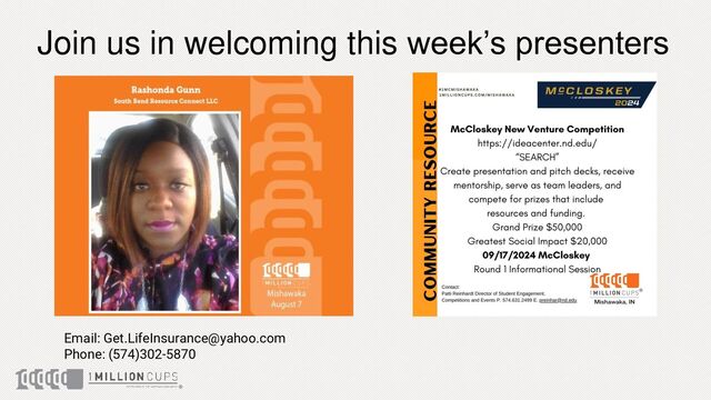 presenters with 6-minute presentations + 20 minutes for Q&A Presenting businesses are less than 5 years old, and desiring to learn Finish each Q&A with the question, “What can we as a community do to help you?” ALWAYS: Free, open to the public, and with free coffee!