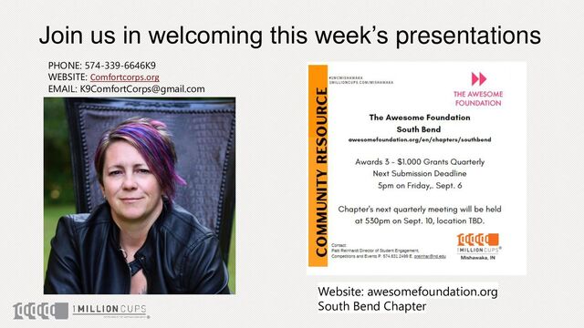 Comfortcorps.org EMAIL: [email protected] Website: awesomefoundation.org South Bend Chapter