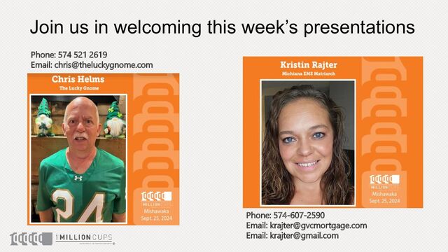 1. Welcome to 1MC Mishawaka Meet Your Start Up & Host