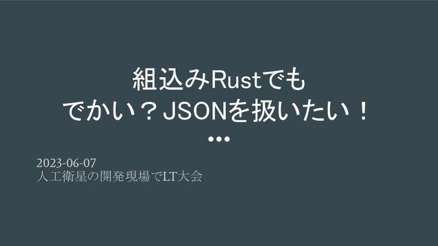 組込みRustでも でかい?JSONを扱いたい! 2023-06-07 人工衛星の開発現場でLT大会