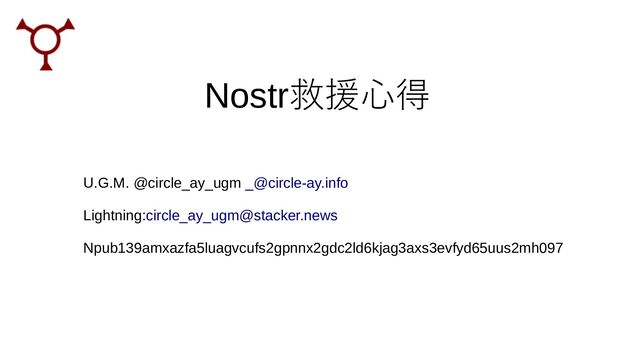 Nostr救援心得 U.G.M. @circle_ay_ugm