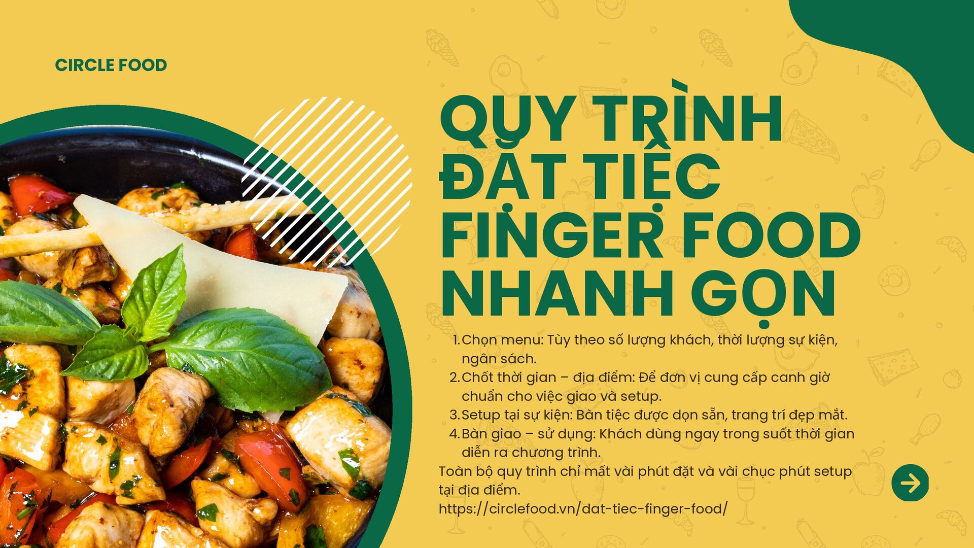 Nếu bạn muốn một buổi tiệc sang – gọn – đẹp – tiện lợi ngay tại Hà Nội, các dịch vụ đặt tiệc finger food sẽ là lựa chọn lý tưởng. Bạn có thể tham khảo menu, giá dịch vụ và cách đặt tiệc tại đây: https://circlefood.vn/dat-tiec-finger-food/