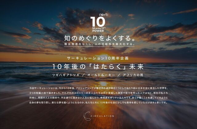 今回サーキュレーションは、今から10年後、プロシェアリングが働き方の選択肢の1つとして当たり前に日本社会に普及した世界を、3つの短編小説で描きました。それぞれのストーリーの主人公たちは何か卓越した技術や能力を持った人ではなく、現在の私たち同様に、周囲の人との関係や、予定通りに進まない人生に悩んだり、停滞感を持っている人々です。彼らが働くことを通してどのように自身の夢を取り戻し、新たな夢を描くようになるのか、私たちと共に10年後の社会に少しでも期待を感じていただけますと幸いです。