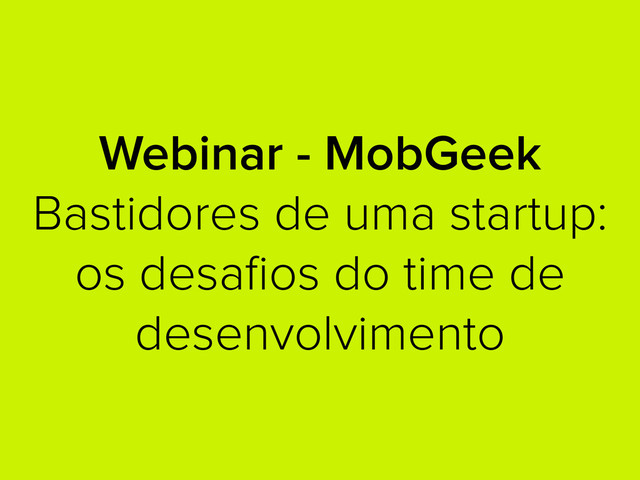 Webinar - MobGeek Bastidores de uma startup: os desafios do