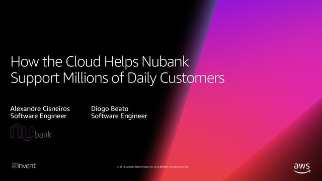 rights reserved. Nubank Stack Immutable, no update-in-place ACID transactions preserve informations about what and when changed Query using data structures (Datalog) Cloud-native using DynamoDB as storage Datomic for data