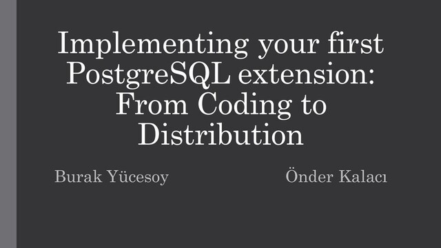 Tutorial: Implementing your first Postgres extension | PGConf EU 2019 | Burak Yucesoy, Onder Kalaci