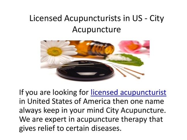 looking for licensed acupuncturist in United States of America then one name always keep in your mind City Acupuncture. We are expert in acupuncture therapy that gives relief to certain diseases.