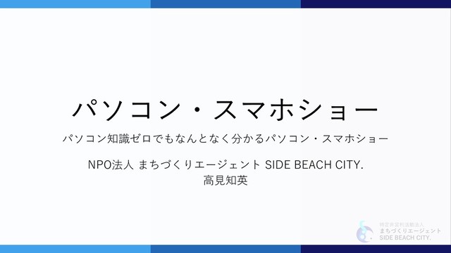 特定非営利活動法人 まちづくりエージェント SIDE BEACH CITY. パソコン・スマホショー パソコン知識ゼロでもなんとなく分かるパソコン・スマホショー NPO法人 まちづくりエージェント SIDE