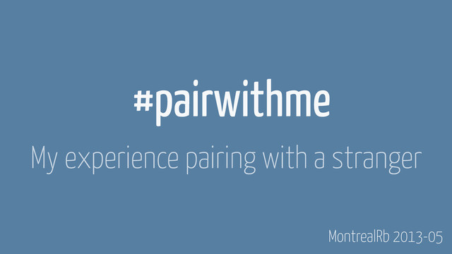 This is a flash talk about my experience pairing with a stranger. I gave this talk at Montreal's Ruby meet-up on May 21st.