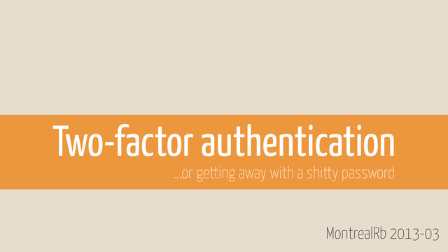 Following the recent Rails vulnerabilities we all know that keeping our dependencies up-to-date is important. What is equally important is providing our users with ways of securing their accounts. We’ll look at how two-factor authentication works, a way of implementing it and how to leverage the Google Authenticator mobile app.