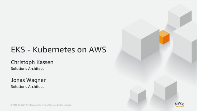 rights reserved. Hands-on! – Lab 1 AWS Workshop for Kubernetes 1. Create an EKS cluster 1. Follow the instructions at https://eksworkshop.com (beginner) 2. Use eksctl https://eksctl.io (advanced) 3. Follow the EKS docs https://docs.aws.amazon.com/eks/latest/userguide/getting- started.html (the “hard“ way)