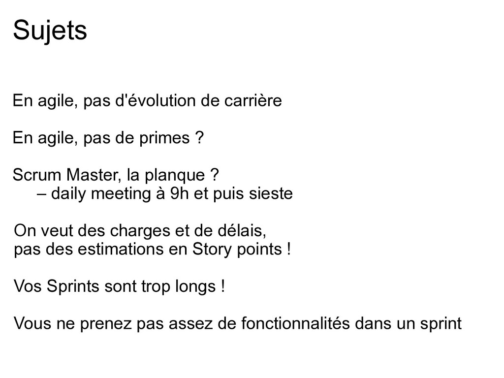 " « Agilité, pas de chef de projet ? pas de pilotage ? », « Sprint, flux-tendu : l’agilité au final = plus de pression », etc…