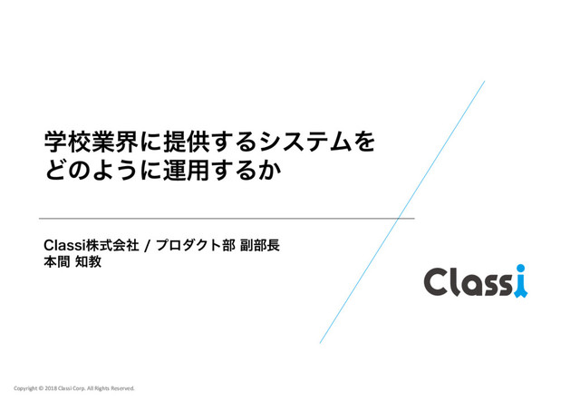 2018 Classi Corp. All Rights Reserved. ֶߍۀքʹఏڙ͢ΔγεςϜΛ ͲͷΑ͏ʹӡ༻͢Δ͔ Copyright © 2018 Classi Corp. All Rights Reserved. $MBTTJגࣜձࣾ ϓϩμΫτ෦ ෭෦ ຊؒ ڭ