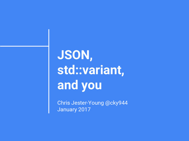 This presentation, which was mostly a code demo and less of a slideshow, explored techniques I used to implement a JSON parser and pretty-printer using `std::variant`. Spoiler: CRTP was involved.