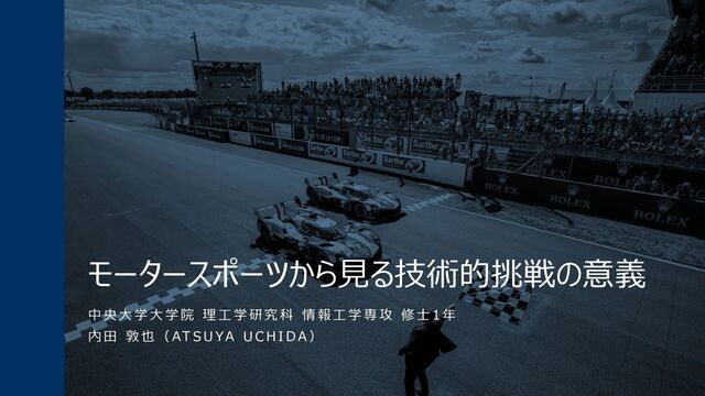 研 究 科 情 報 ⼯ 学 専 攻 修 ⼠ 1 年 内 ⽥ 敦 也 ( AT S U YA U C H I D A ) モータースポーツから⾒る技術的挑戦の意義