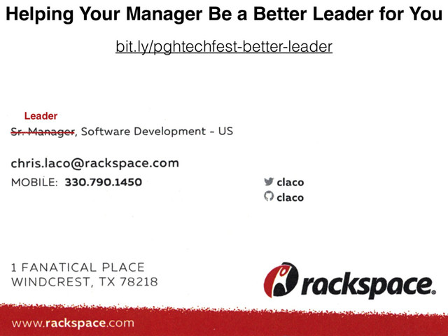 Helping Your Manager Be a Better Leader for You - PghTechFest 2017
