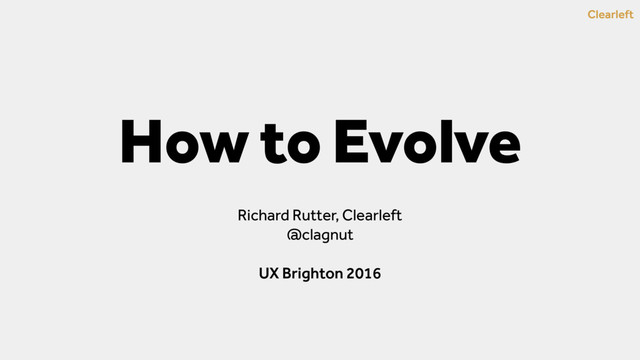 Hear (influences) Gain (wants, needs, success) Pain (fears, frustrations, obstacles) • What is important to them? • What really counts for them? • What keeps them up at night? • What are their worries and aspirations? • What does it look like? • Who surrounds her? • How do they access websites? • What are main forms of communication? • What do their colleagues say? • What does their boss say? • What other media or sources are influential? • What is their attitude in public? • What is their behaviour towards others? • What is their biggest pain? • What is their biggest frustration? • What obstacles are holding them back? • What do they gain? • What do they want to achieve? • How do they determine or measure success? • What strategies, shortcuts or workarounds might they use? Clearleft