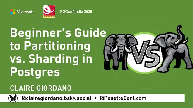 Slides from a conference talk at PGConf India 2025 in Bengaluru. Abstract: Partitioning has come a long way in Postgres since the Postgres 10 days, as has sharding via the Citus extension. If you need to scale your Postgres, your friends may recommend you look into partitioning and/or sharding. But what’s the difference between these two approaches?