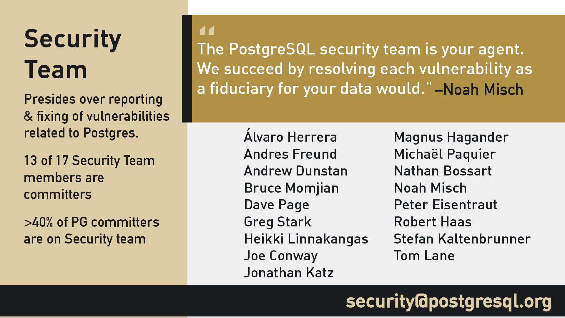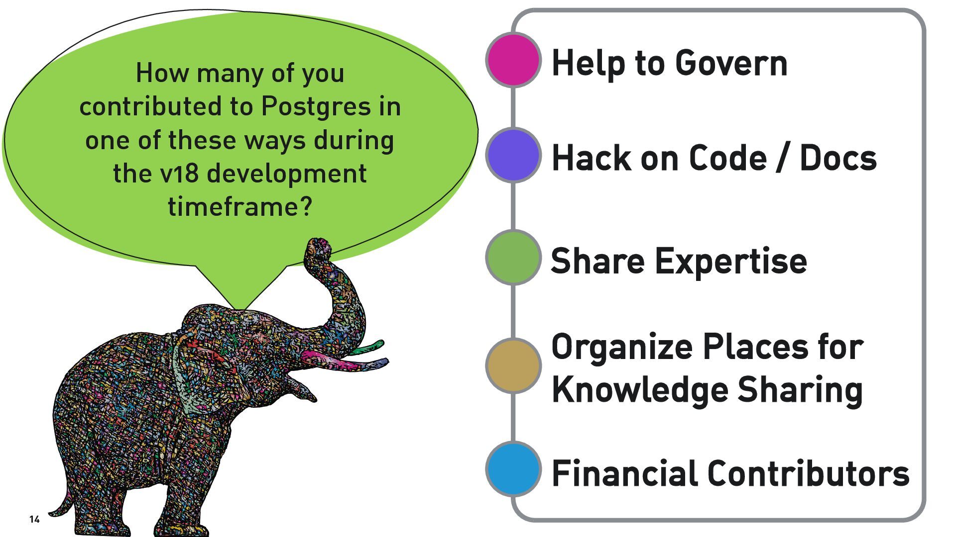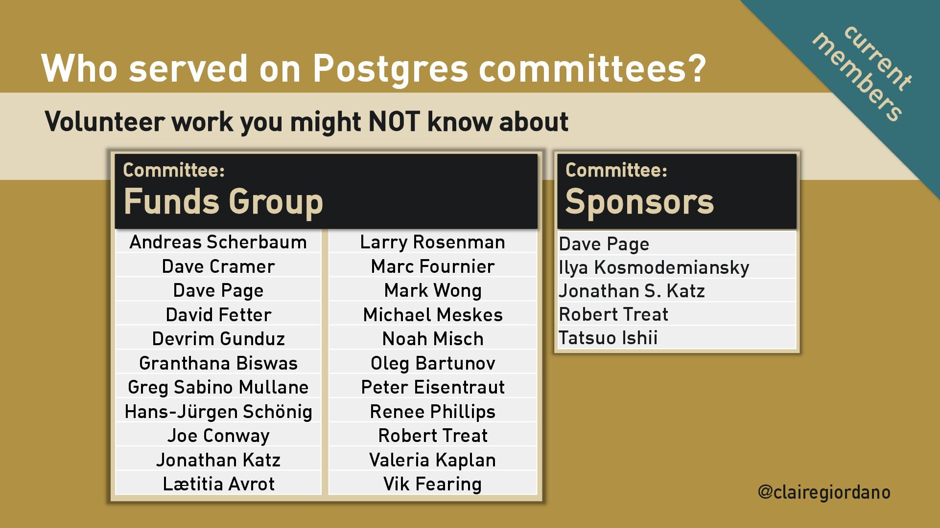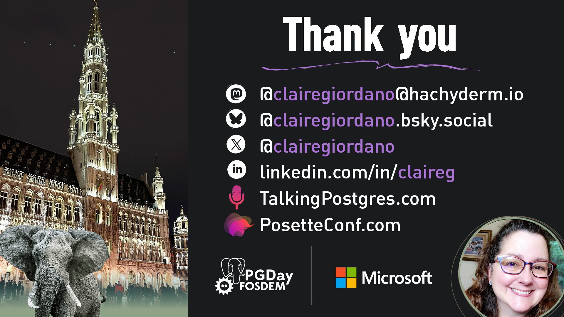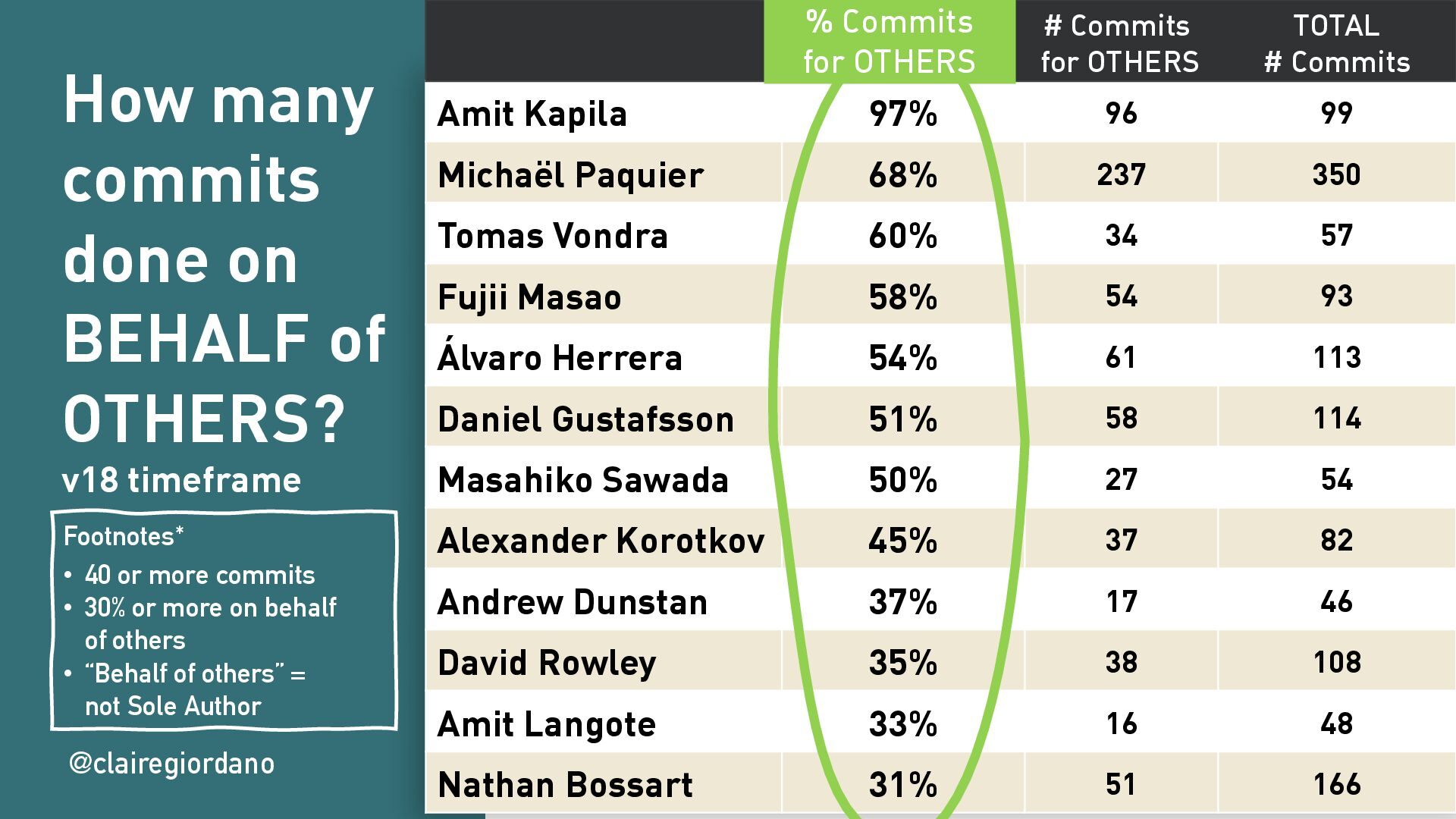 This talk shares an analysis of contributions to Postgres in the v18 timeframe. The research is done by Postgres committer Daniel Gustafsson and Claire Giordano—and leverages data from public sources like commit logs, mailing lists, and PostgreSQL.org. You’ll see maps and charts as you learn about the people behind governance, conferences, meetups, infrastructure, and the code.