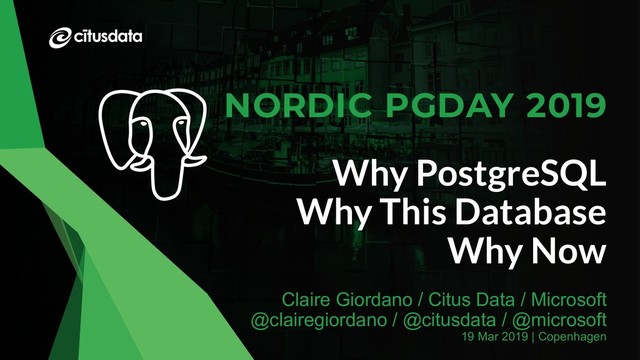 I spent the early part of my career working on developer tools, operating systems, high-speed file systems, and scale-out storage. Not databases. Frankly, I always thought that databases were a bit boring. So one year in to my new job at a Postgres company, I continue to be amazed at the enthusiasm of the PostgreSQL developer community and users. I mean, people’s eyes light up when you ask them why they love Postgres. Sure, a lot of us get animated when talking about our newest iPhone, or Ronaldo’s phenomenal free-kick goal in the World Cup, or mint chip gelato from La Strega Nociola—but most platform software simply doesn’t trigger this kind of passion. So why does Postgres? Why is this open source database having such a “moment”? Why now? Well, I’ve been trying to find out, looking at this “Postgres moment” from a few different angles. In this talk I’ll share what I’ve observed to be the top 10 business, technology, and community reasons so many of you have so much affection for PostgreSQL.