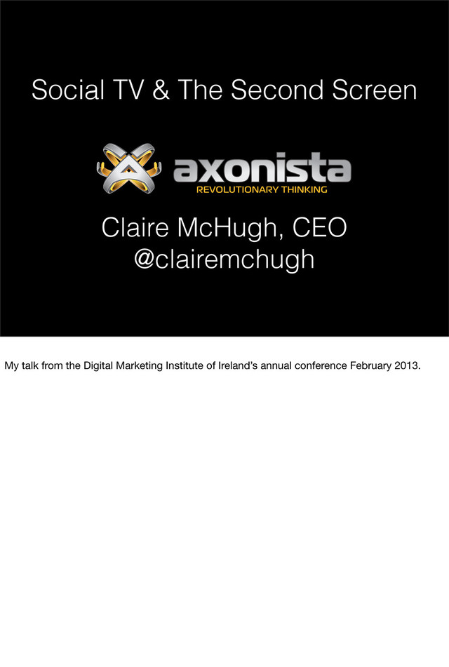 widen the reach of this TV conversation. The Social Networks were born. Now the audience had a means to chat about TV shows to other audience members and the broadcasters too, at the same time as they were watching TV.