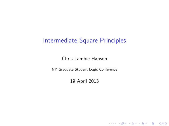 > κ is a measurable cardinal. Let P = Coll(κ, < λ) and, in V P, let Q = Q(λ). Theorem (L-H) In V P∗Q, λ = κ+, µ(λ) holds, and κ fails. (In fact, κ,<κ fails, though ∗ κ holds.) In V P∗Q, let T be the forcing to thread the (λ)-sequence added by Q. Let ν ≤ κ be a regular cardinal. We can define a forcing iteration Sν of length λ+ such that, in V P∗Q∗Sν , if S ⊆ λ ∩ cof(ν) is stationary, then T “S is stationary”. Theorem (L-H) Let µ < ν ≤ κ be regular cardinals. Then, in V P∗Q∗Sν , µ(λ) holds but, for every stationary S ⊆ λ ∩ cof(ν), (λ, S) fails.
