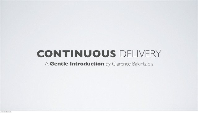 big picture (“It’s not my job or responsibility”, “Testing is the QA department’s job!”) • “Snowflake” servers, works of art - manual tweaks and unable to reproduce from scratch • Wanting to implement CD but not willing to be agile or improve technical practices • Overly restrictive governance (gates, manual approval, etc) Tuesday, 2 July 13