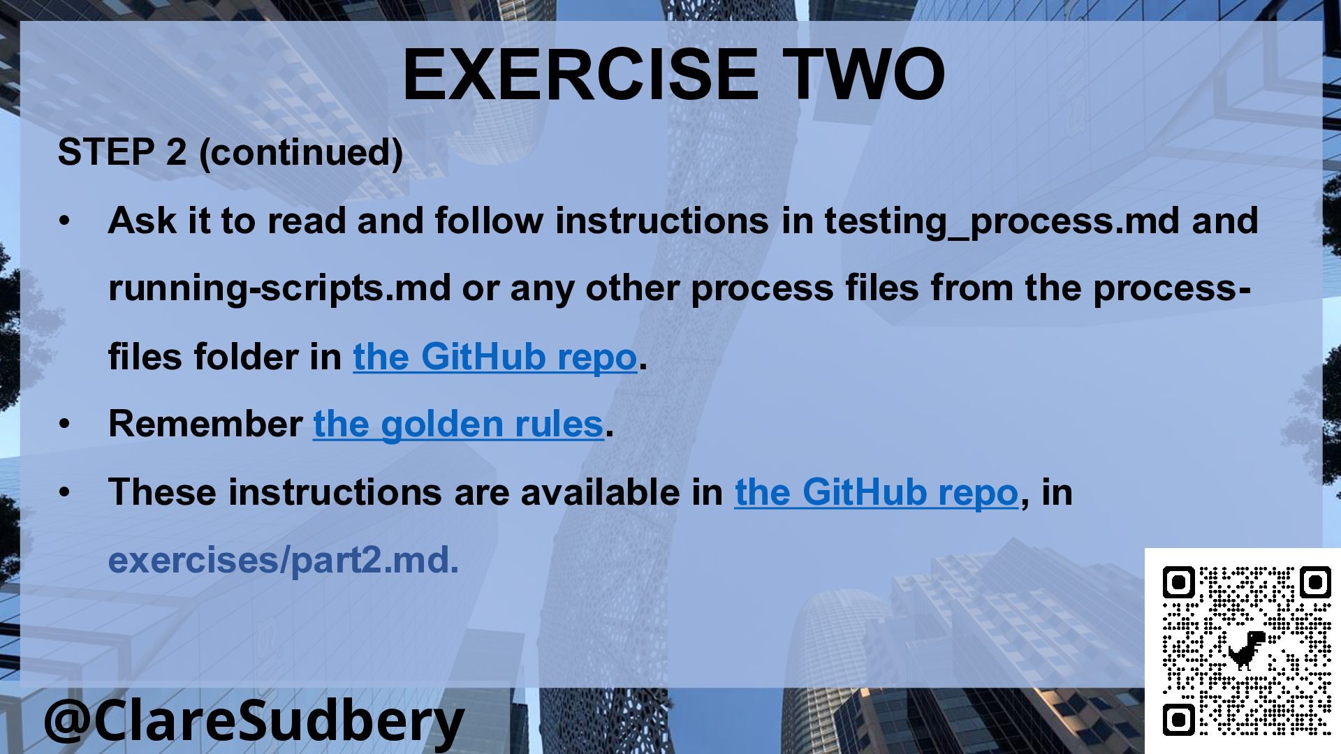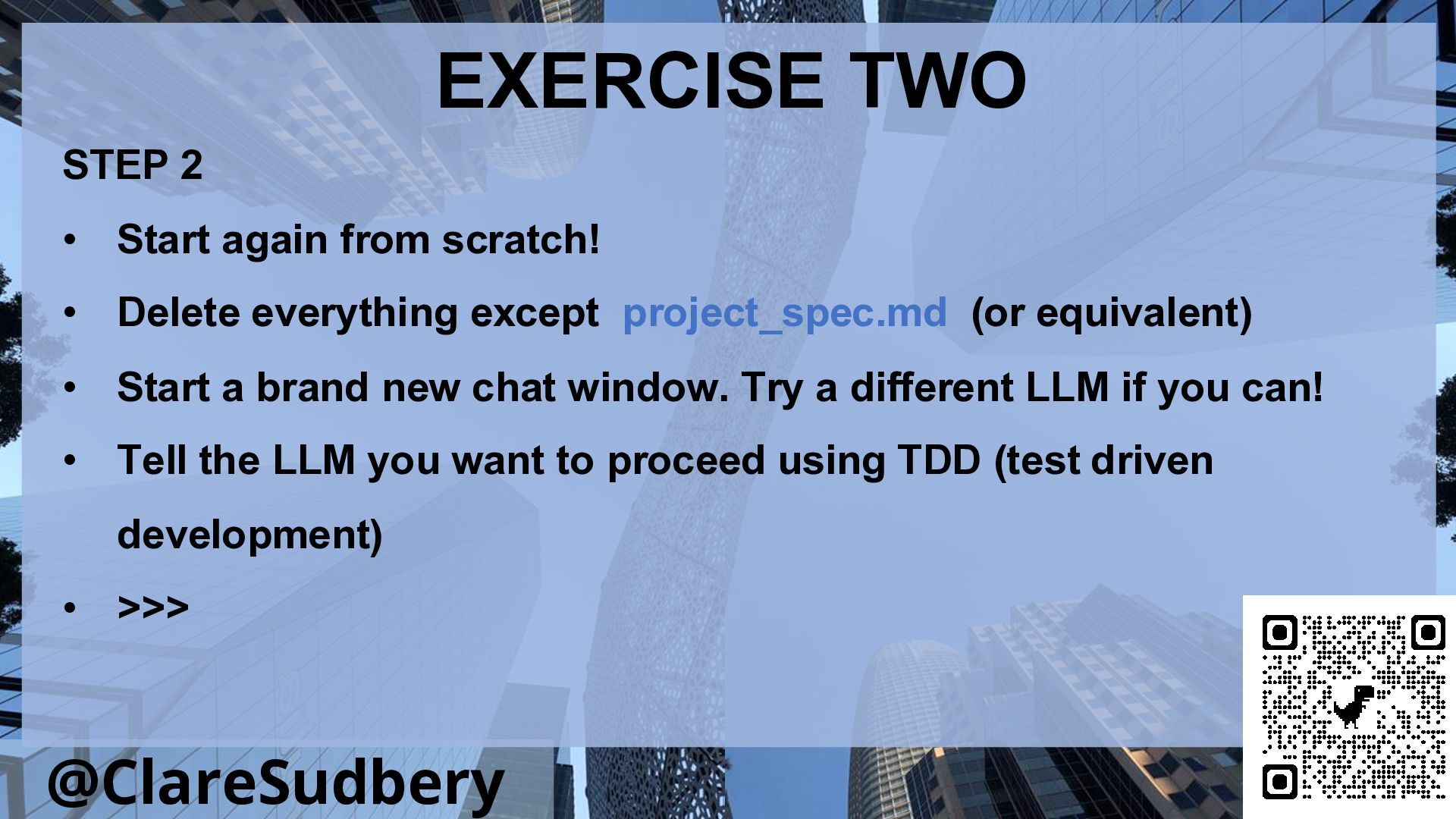 The workshop will involve hands-on coding as we build a simple app piece by piece, checking the results as we go and often starting again from scratch to investigate different approaches and discover what impact they have on the quality of the output. By combining TDD (Test Driven Development) with the outputs of an AI coding assistant, what you can get is something very powerful.