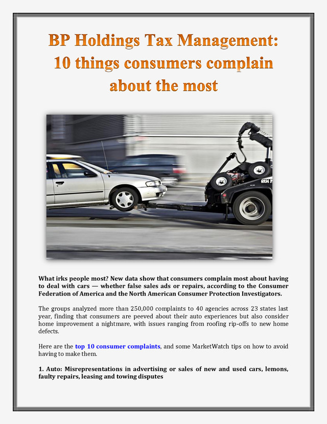 What irks people most? New data show that consumers complain most about having to deal with cars — whether false sales ads or repairs, according to the Consumer Federation of America and the North American Consumer Protection Investigators.
