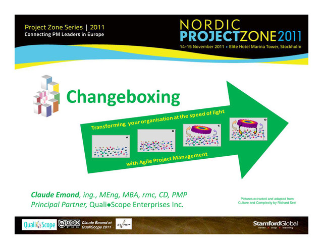 2011 Claude Emond, ing., MEng, MBA, rmc, CD, PMP Principal Partner, QualiScope Enterprises Inc. Pictures extracted and adapted from Culture and Complexity by Richard Seel Changeboxing