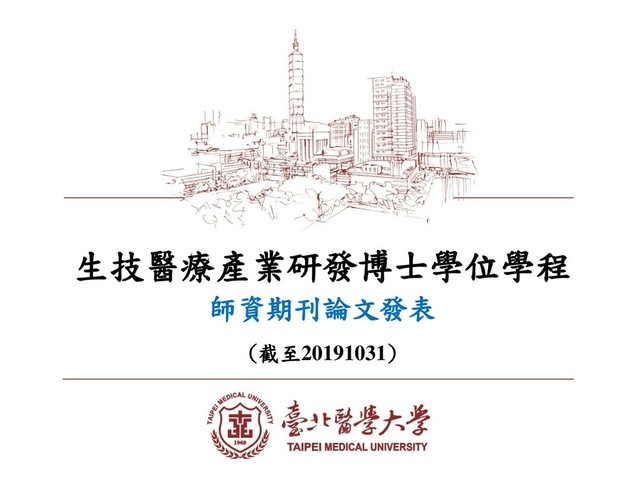 breast cancer cells in vitro and in vivo. Hsieh YL, Tu HJ, Pan SL (潘秀玲), Liou JP, Yang CR. Biochimica Et Biophysica Acta-Molecular Cell Research. 2019 JUN; 1866(6): 992-1003.【IF: 4.651 Ranking: 55/293】 Promyelocytic leukemia zinc finger is involved in the formation of deep layer cortical neurons. Lin HC, Ching YH, Huang CC, Pao PC, Lee YH, Chang WC, Kao TJ, Lee YC (李宜釗)#. Journal Of Biomedical Science. 2019 APR 26, 26: 30. 【IF: 5.203 Ranking: 70/229】 In Vitro and In Vivo Studies of Hydrophilic Electrospun PLA95/-TCP Membranes for Guided Tissue Regeneration (GTR) Applications. Chen CC (陳建中), Lee SY, Teng NC, Hu HT, Huang PC, Yang JC. Nanomaterials. 2019 Apr 11; 9(4). 【IF: 4.034 Ranking: 71/293】 Journal papers published-2019 資料來源: 研究競爭力系統