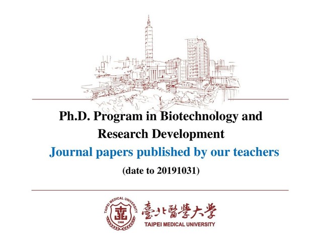 breast cancer cells in vitro and in vivo. Hsieh YL, Tu HJ, Pan SL (潘秀玲), Liou JP, Yang CR. Biochimica Et Biophysica Acta-Molecular Cell Research. 2019 JUN; 1866(6): 992-1003.【IF: 4.651 Ranking: 55/293】 Promyelocytic leukemia zinc finger is involved in the formation of deep layer cortical neurons. Lin HC, Ching YH, Huang CC, Pao PC, Lee YH, Chang WC, Kao TJ, Lee YC (李宜釗)#. Journal Of Biomedical Science. 2019 APR 26, 26: 30. 【IF: 5.203 Ranking: 70/229】 In Vitro and In Vivo Studies of Hydrophilic Electrospun PLA95/-TCP Membranes for Guided Tissue Regeneration (GTR) Applications. Chen CC (陳建中), Lee SY, Teng NC, Hu HT, Huang PC, Yang JC. Nanomaterials. 2019 Apr 11; 9(4). 【IF: 4.034 Ranking: 71/293】 Journal papers published-2019 Data Sourses: Research Performance Index System