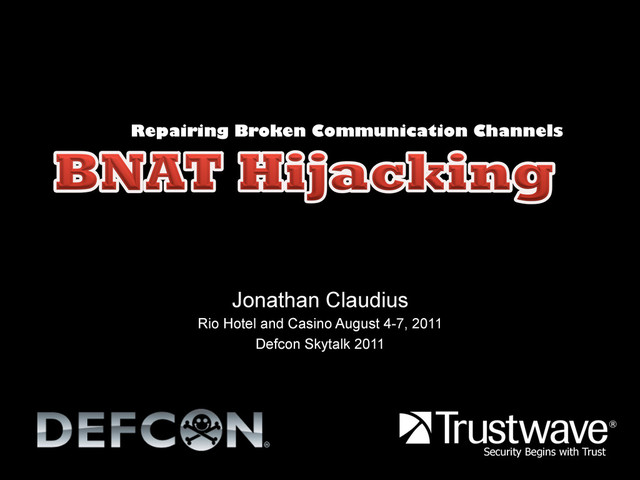 Video of Updated Presentation: http://www.irongeek.com/i.php?page=videos/aide2012/bnat-hijacking-repairing-broken-communication-channels-jonathan-claudius