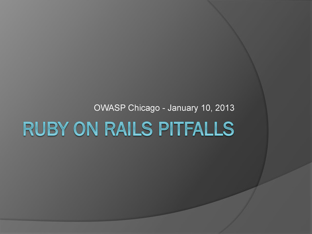 and interesting platform in much need of security attention. At a recent ChicagoRuby Meetup, 2 of 97 attendees had ever heard of OWASP. We want to change that. We want you to help.