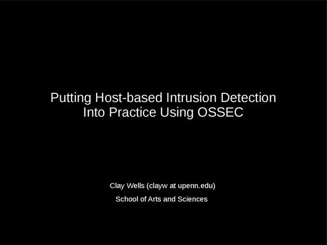 After a short introduction to OSSEC we look at rules/alerts, email alerts, active response, OSSEC commands, and a few reports. A few graphs and notes regarding future work are also touched upon.