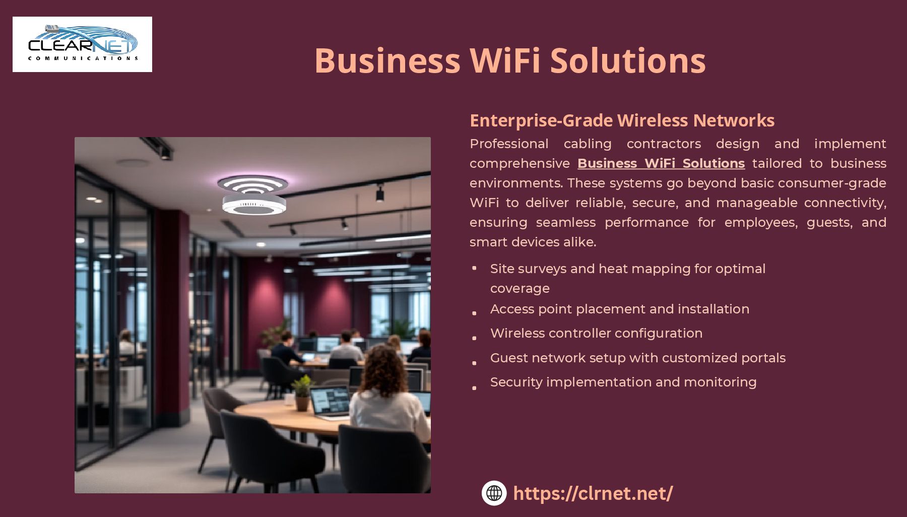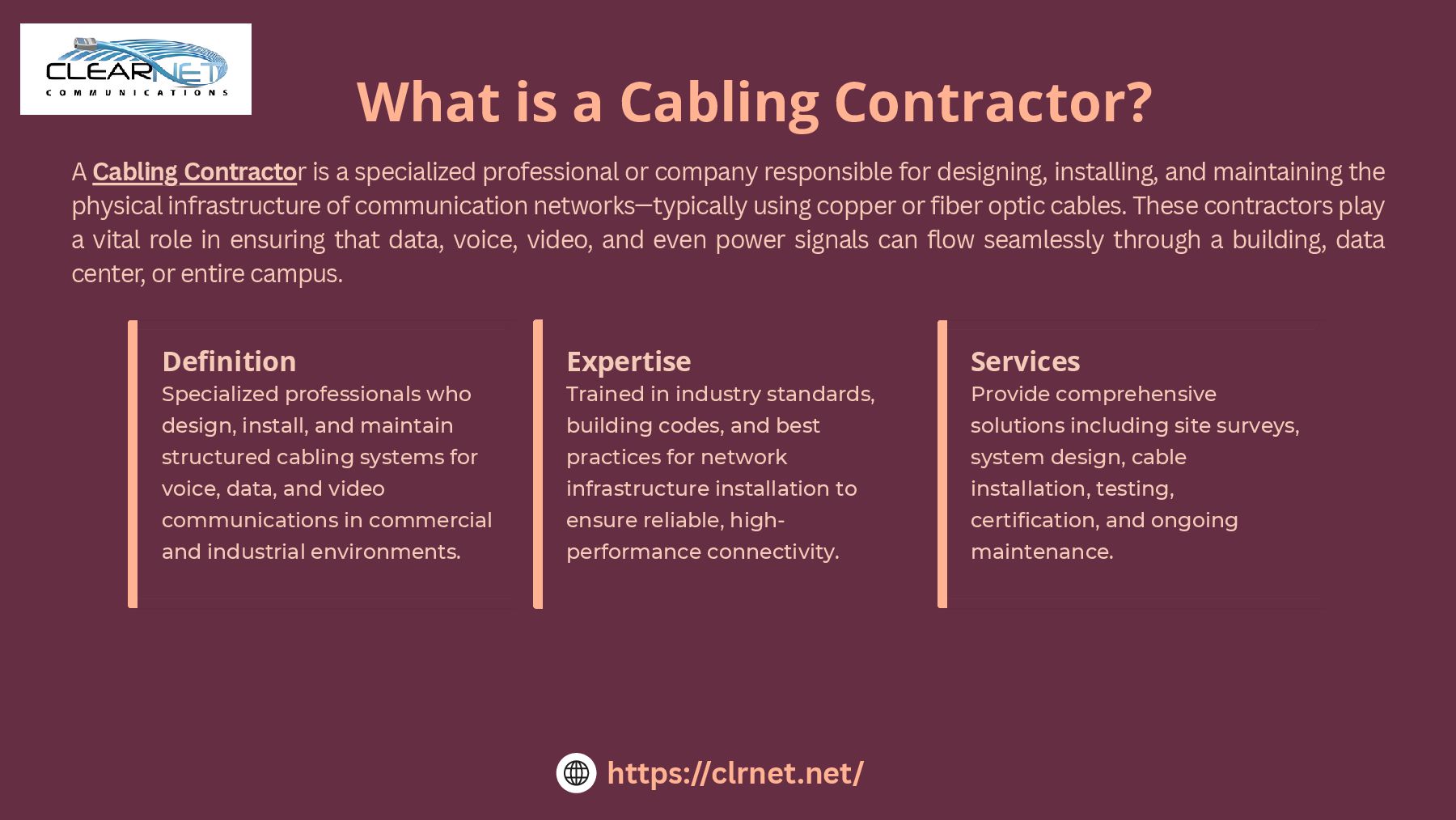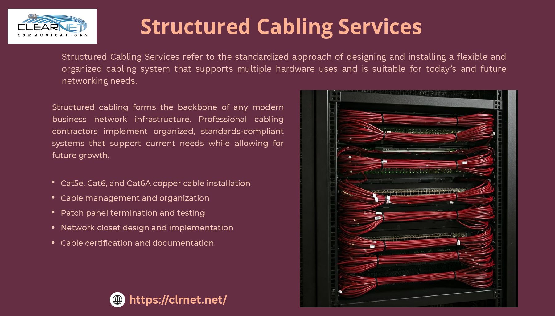 Clearnet Communications provides expert Data Cabling Contractor Services designed to support fast, secure, and scalable network infrastructure for businesses of all sizes. Our certified technicians specialize in the installation and maintenance of structured cabling systems, including Cat5e, Cat6, and fiber optic networks. Whether you’re setting up a new office, expanding an existing network, or upgrading outdated cabling, we deliver custom solutions that ensure optimal performance and future-proof connectivity. We also offer end-to-end support, from site assessment and design to testing and certification. With a strong focus on quality, reliability, and minimal downtime, Clearnet is your trusted partner for all structured cabling and business WiFi solutions.