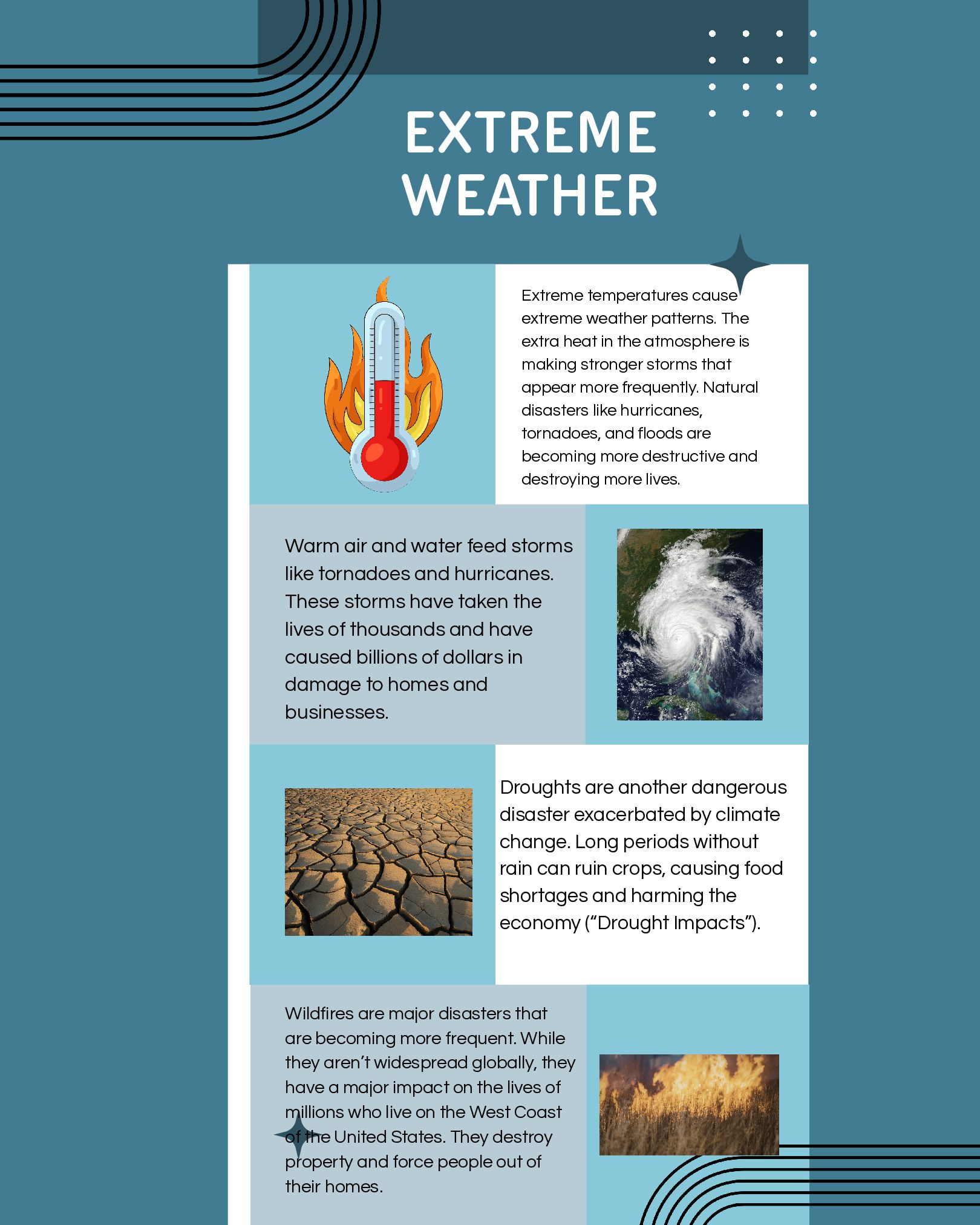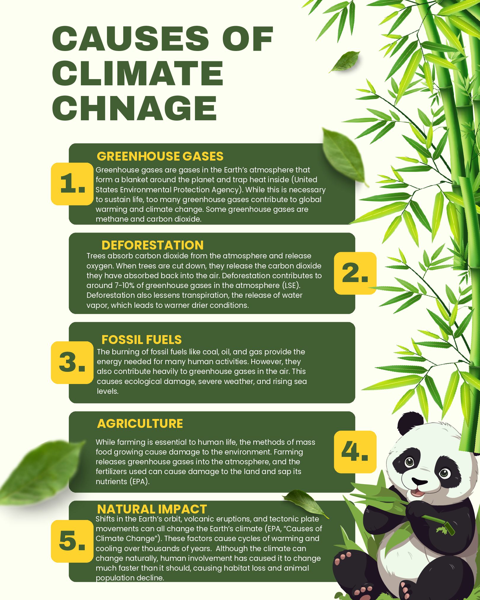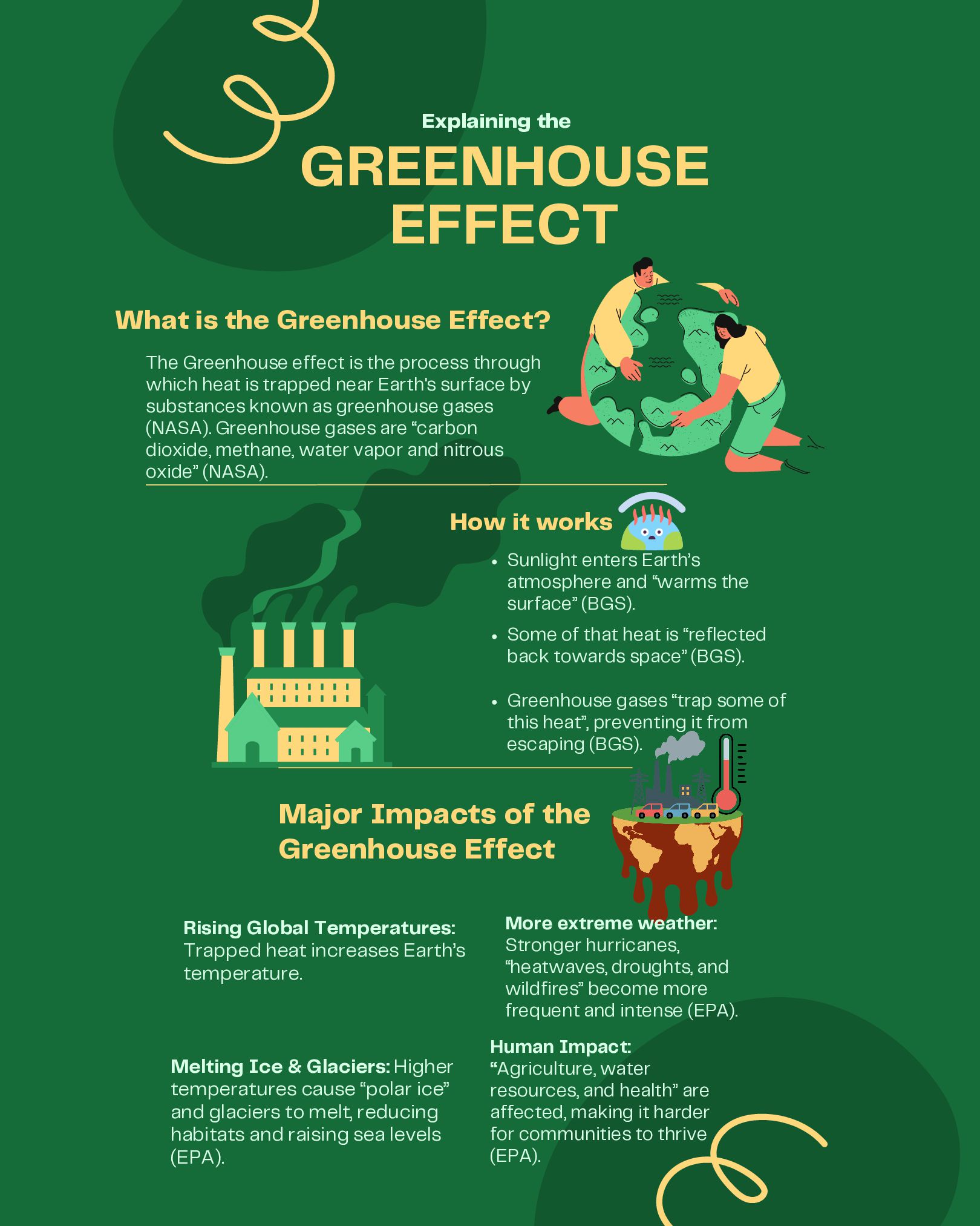 Administration.” Www.noaa.gov, Department of Commerce, 1 Feb. 2019, www.noaa.gov/education/resource-collections/climate/climate-data-monitoring. Accessed 29 Apr. 2026. “What Is Climate Change?” United Nations, 2025, www.un.org/en/climatechange/what-is-climate-change. British Geological Survey. “The Greenhouse Effect.” British Geological Survey, 2022, www.bgs.ac.uk/discovering-geology/climate-change/how-does-the- greenhouse-effect-work/. Accessed 7 Apr. 2026. EPA. “Greenhouse Gases.” US EPA, www.epa.gov/report-environment/greenhouse-gases. Accessed 29 Mar. 2026. NASA. “What Are Greenhouse Gases?” NASA Science, science.nasa.gov/kids/earth/what-are-greenhouse-gases/. Accessed 8 Apr. 2026. EPA. “Climate Impacts on Ecosystems | Climate Change Impacts | US EPA.” Epa.gov, 2BC, 19january2017snapshot.epa.gov/climate-impacts/climate-impacts- ecosystems_.html. Accessed 16 Apr. 2026. . “What Is Coral Bleaching?” Noaa.gov, NOAA, oceanservice.noaa.gov/facts/coral_bleach.html . Accessed 16 Apr. 2026. Shivanna, K. R. “Climate Change and Its Impact on Biodiversity and Human Welfare.” Proceedings of the Indian National Science Academy, vol. 88, no. 2, Mar. 2022, pp. 160–171, www.ncbi.nlm.nih.gov/pmc/articles/PMC9058818/, https://doi.org/10.1007/s43538-022-00073-6. National Oceanic and Atmospheric Administration. “Climate Change Impacts.” National Oceanic and Atmospheric Administration, NOAA, 13 June 2025, www.noaa.gov/education/resource-collections/climate/climate-change-impacts. Accessed 8 Apr. 2026. Scripps. “FAQ: Climate Change in the Polar Regions.” Scripps Institution of Oceanography, scripps.ucsd.edu/research/climate-change-resources/faq-climate- change-polar-regions. Accessed 11 Apr. 2026. “A Breath of Fresh Air: How Trees Help Mitigate Climate Change - National Forest Foundation.” National Forest Foundation, www.nationalforests.org/article/a- breath-of-fresh-air-how-trees-help-mitigate-climate-change/. Accessed 28 Apr. 2026. “Drought Impacts.” Drought.gov, www.drought.gov/impacts. Accessed 14 Apr. 2026. EPA. “Agriculture Sector Emissions | US EPA.” US EPA, 10 Jan. 2025, www.epa.gov/ghgemissions/agriculture-sector-emissions. “Causes of Climate Change.” Www.epa.gov, Environmental Protection Agency, 12 Apr. 2024, www.epa.gov/climatechange-science/causes-climate-change. LSE. “What Is the Role of Deforestation in Climate Change and How Can “Reducing Emissions from Deforestation and Degradation” (REDD+) Help?” Grantham Research Institute on Climate Change and the Environment, The London School of Economics and Political Science, 10 Feb. 2023, www.lse.ac.uk/granthaminstitute/explainers/whats-redd-and-will-it-help-tackle-climate-change/. NASA. “NASA Sea Level Change Portal: Ice Melt.” NASA Sea Level Change Portal, 2024, sealevel.nasa.gov/understanding-sea-level/global-sea-level/ice-melt/. “NASA Sea Level Change Portal: Thermal Expansion.” NASA Sea Level Change Portal, NASA, 2024, sealevel.nasa.gov/understanding-sea-level/global-sea- level/thermal-expansion/. “Ozone Trends | State of the Air.” Www.lung.org, American Lung Association, www.lung.org/research/sota/key-findings/ozone-pollution. Accessed 28 Apr. 2026. United Nations. “Causes and Effects of Climate Change.” United Nations, www.un.org/en/climatechange/science/causes-effects-climate-change. Accessed 28 Apr. 2026. United States Environmental Protection Agency. “Overview of Greenhouse Gases.” US EPA, 16 Jan. 2025, www.epa.gov/ghgemissions/overview-greenhouse- gases. “Why Is the Promenade Flooding Getting Worse Every Year?” Waterfront Partnership of Baltimore, Waterfront Partnership Of Baltimore, www.waterfrontpartnership.org/climate-change-impacts. Accessed 28 Apr. 2026. “Climate Change in Maryland.” Dnr.maryland.gov, Maryland Department of Natural Resources, dnr.maryland.gov/climateresilience/Pages/about_climatechange.aspx. Accessed 28 Apr. 2026.