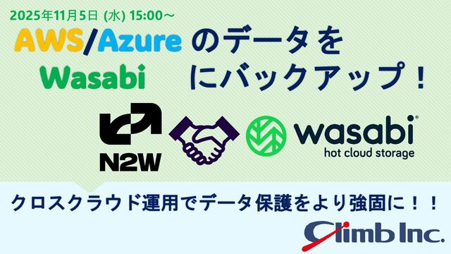 AWS/Azureのデータ保護における、Wasabiと連携したコスト最適化とデータ保護強化に関心のある方必見です。