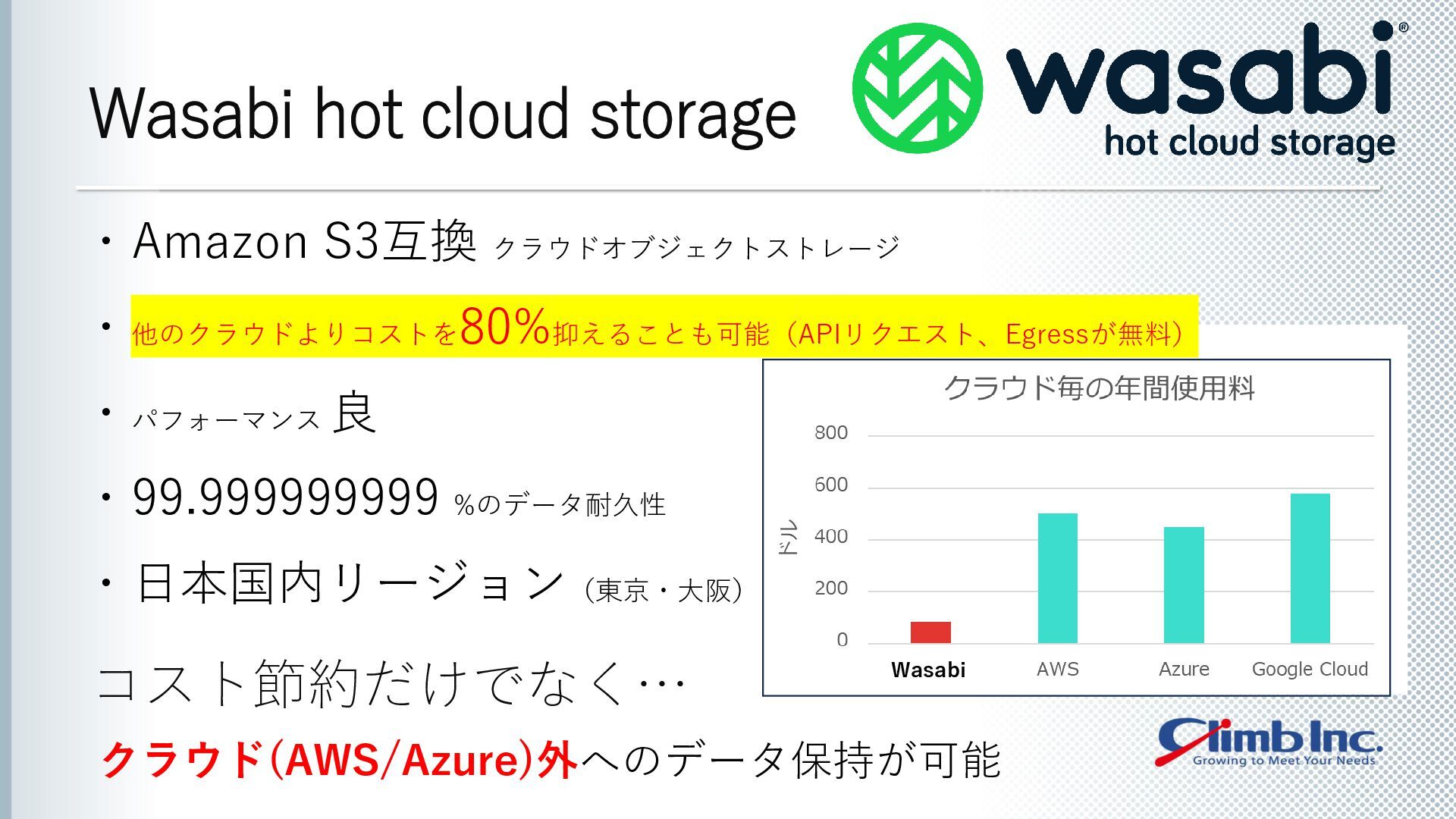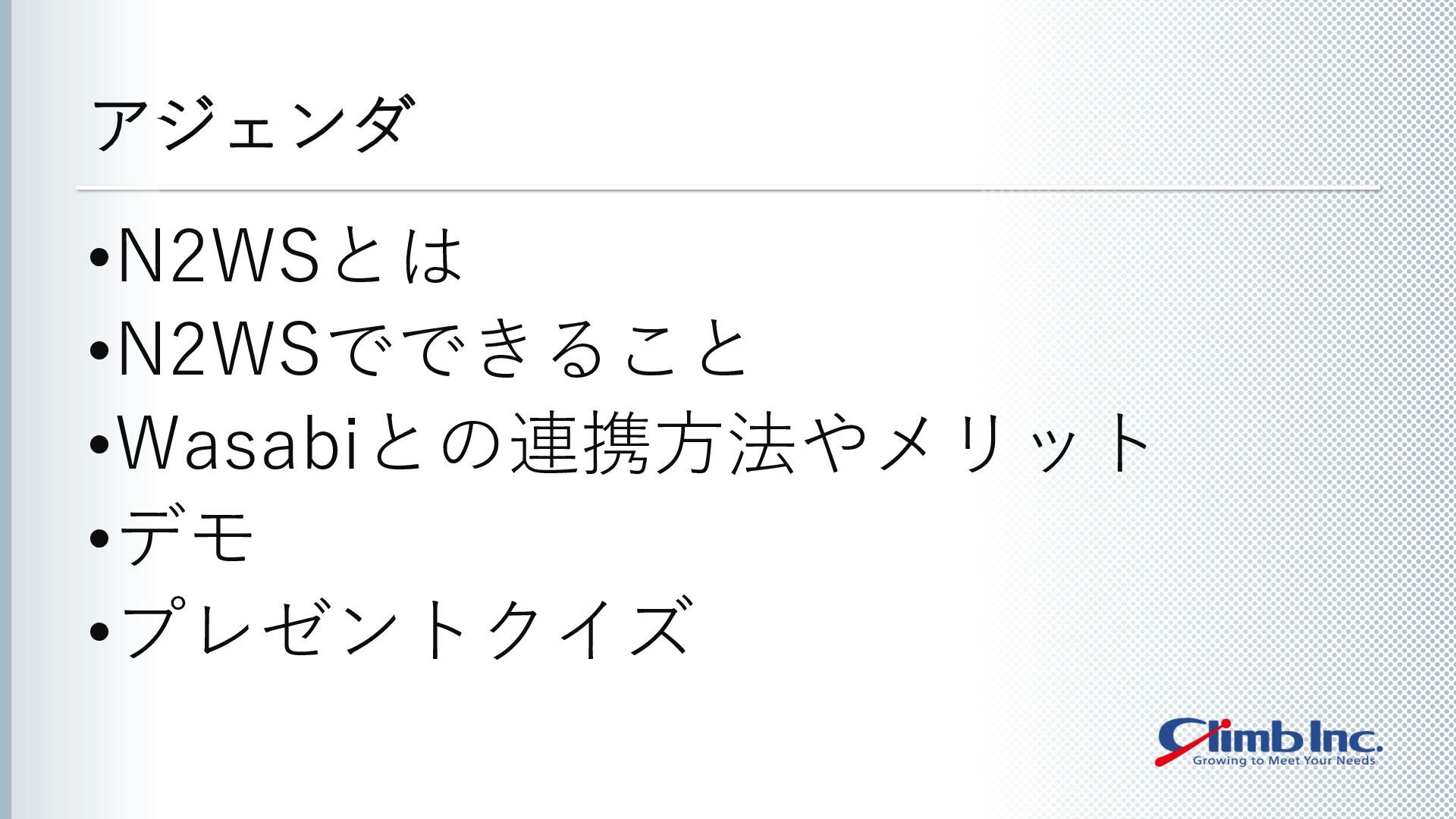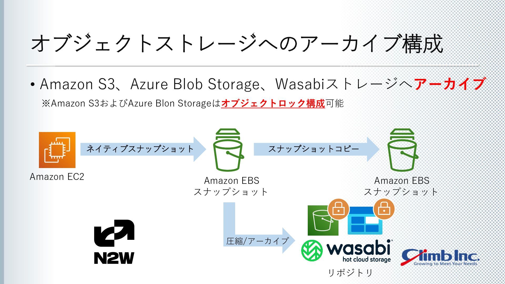 本セミナーでは、N2WSとWasabiの連携によって